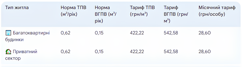 • Змішані (тверді) побутові відходи — 422,22 грн за 1 м³
