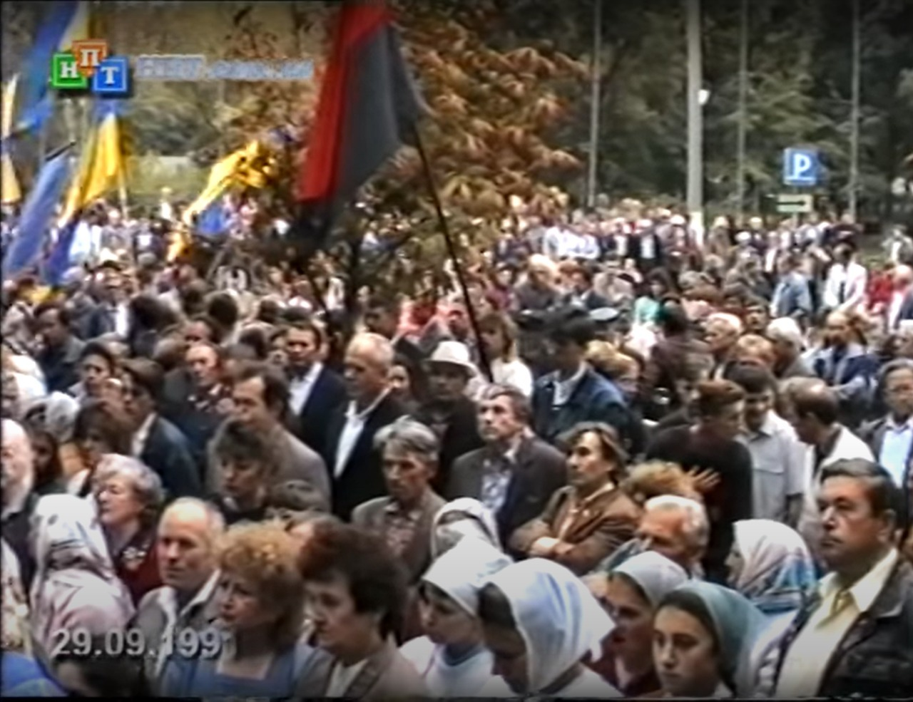 Історичний момент зафіксовано в кінохроніці, що збереглася в архівах «Незалежного Павлоградського телебачення». Відео нині доступне на YouTube. Судячи з кадрів, на мітинг, приурочений до підняття прапора, зібралося чимало мешканців. Люди тримали синьо-жовті стяги, прапори з тризубом, а також — що особливо примітно — червоно-чорні знамена.